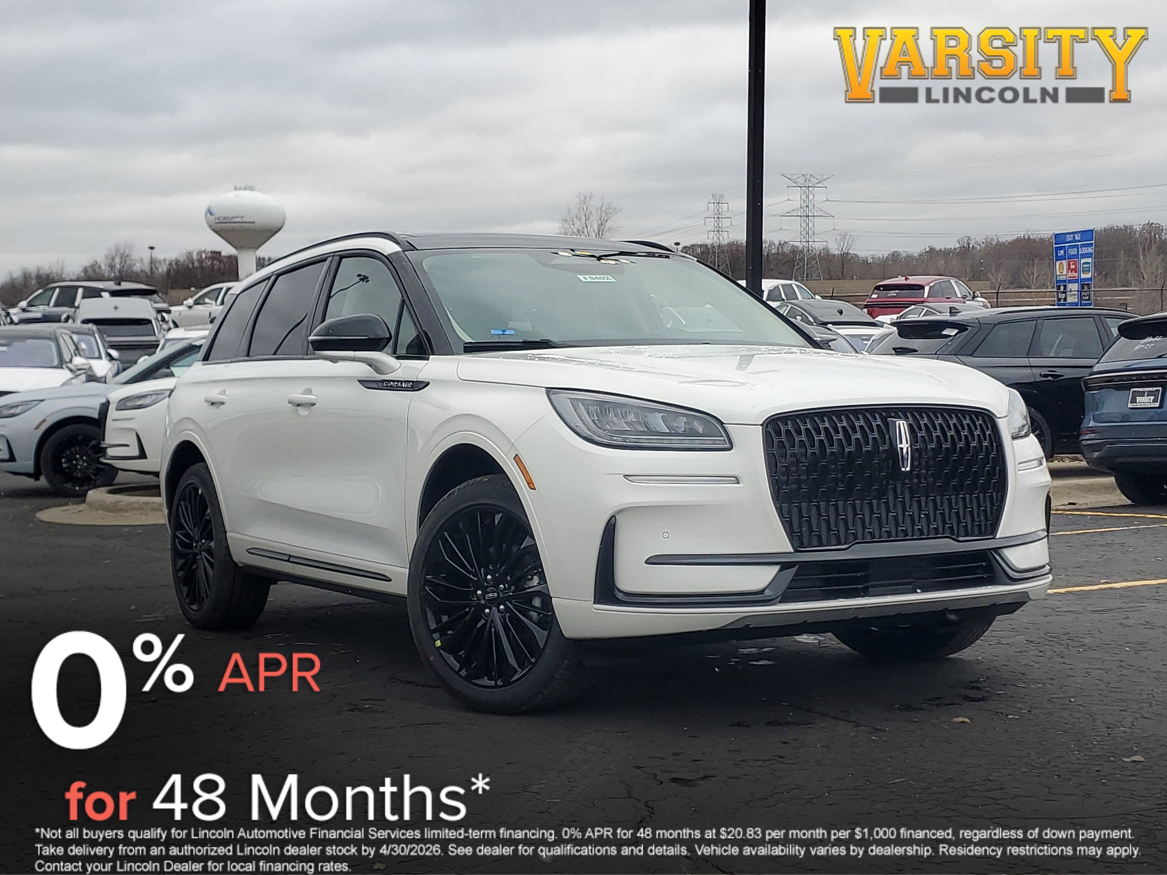 This vehicle is part of our Lincoln Courtesy Transportation Program and will be available soon. Ask about additional factory purchase and lease savings! Used 2026 Lincoln Corsair Premiere AWD in Pristine White Metallic Tri-Coat with Light Smoked Truffle interior at Varsity Lincoln in Novi, Michigan. We offer complimentary delivery within 300 miles and we offer shipping within the United States. Please call us at (248) 305-5300 so that we may confirm availability of this Corsair and discuss finance and lease options as well as in-home delivery. A/Z-Plan Pricing shown is available only to eligible Ford employees and family members and includes Ford factory rebates based on Southeast Michigan residency. Contact dealer for details as well as pricing for suppliers, friends & family, and non-plan customers. Some rebates may not combine with special APR. Our sales department is open Monday - Friday from 9:00 AM - 6:00 PM and Saturday 9:00 AM - 3:00 PM. All prices plus $229 documentary preparation fee and State fees/taxes. Visit Varsity Lincoln at 49251 Grand River Ave in Novi, MI 48374 (northwestern suburb of Detroit) or online at varsitylincoln.com. Factory options on this Varsity Lincoln Corsair include: 2.0L TURBOCHARGED I-4 ENGINE -inc: auto start-stop technology (STD), 8-SPEED AUTOMATIC TRANSMISSION (8F35) W/SELECTSHIFT CAPABILITY (STD), JET APPEARANCE PACKAGE -inc: 20 Black Aluminum Wheels 245/45R20 All-Season BSW 99V-Rated Tires Pillar Black Exterior Elements fender badge grille upper design door frame molding and front and rear door spears Body-Color Exterior Elements front and rear bumper lower fascia wheel lips and lower door cladding, EQUIPMENT GROUP 101A PREMIERE II -inc: 18 Bright Machined Aluminum Wheels w/Dark Tarnish Finish Hands-Free Liftgate 2 Additional USB Ports (Illuminated Types C & C) - Rear of Center Console Lincoln Co-Pilot360 Vision 2.0 Incremental to the standard Lincoln Co-Pilot360 2.1 features Refer to the standard base series page for feature listings Front Parking Sensors Reverse Brake Assist 360-Degree Camera Post-Collision Braking Rain Sensing Wipers System must be turned off before entering an automatic car wash Power Tilt/Telescoping Steering Column w/Memory Phone As A Key (PAAK) Available on select vehicles Requires feature activation Not compatible w/all mobile phones Frameless Auto Dimming Rearview Mirror 60/40 EasyFold Rear Seat w/Power Seatback Release Windshield Wiper De-Icer Universal Garage Door Opener Sideview Mirrors auto dimming auto fold black cap heated memory Lincoln logo welcome mat and turn signal indicators Heated Steering Wheel Wireless Chargin, Turbocharged, All Wheel Drive, Power Steering, ABS, 4-Wheel Disc Brakes, Brake Assist, Brake Actuated Limited Slip Differential, Aluminum Wheels, Tires - Front All-Season, Tires - Front Performance, Tires - Rear All-Season, Tires - Rear Performance, Heated Mirrors, Power Mirror(s), Power Folding Mirrors, Rear Defrost, Privacy Glass, Intermittent Wipers, Variable Speed Intermittent Wipers, Rear Spoiler, Remote Trunk Release, Power Liftgate, Power Door Locks, Daytime Running Lights, Automatic Headlights, LED Headlights, Automatic Highbeams, AM/FM Stereo, Navigation System, Satellite Radio, Requires Subscription, MP3 Capability, Steering Wheel Audio Controls, Auxiliary Audio Input, Satellite Radio, Requires Subscription, Bluetooth® Connection, Pass-Through Rear Seat, Rear Bench Seat, Adjustable Steering Wheel, Trip Computer, Power Windows, WiFi Hotspot, Leather Steering Wheel, Keyless Entry, Power Door Locks, Keyless Start, Keyless Entry, Power Door Locks, Cruise Control, Adaptive Cruise Control, Climate Control, Multi-Zone A/C, A/C, Power Driver Seat, Power Passenger Seat, Bucket Seats, Heated Front Seat(s), Driver Adjustable Lumbar, Passenger Adjustable Lumbar, Seat Memory, Premium Synthetic Seats, Auto-Dimming Rearview Mirror, Driver Vanity Mirror, Passenger Vanity Mirror, Driver Illuminated Vanity Mirror, Passenger Illuminated Visor Mirror, Floor Mats, Mirror Memory, Seat Memory, Remote Engine Start, Keyless Start, Remote Engine Start, Smart Device Integration, Requires Subscription, Navigation System, MP3 Capability, Telematics, Auxiliary Audio Input, Smart Device Integration, Requires Subscription, Power Windows, Power Door Locks, Trip Computer, Security System, Immobilizer, Cruise Control Steering Assist, Traction Control, Stability Control, Traction Control, Front Side Air Bag, Rear Parking Aid, Blind Spot Monitor, Cross-Traffic Alert, Rear Collision Mitigation, Lane Departure Warning, Lane Keeping Assist, Lane Departure Warning, Front Collision Mitigation, Driver Monitoring, Evasion Assist, Tire Pressure Monitor, Driver Air Bag, Passenger Air Bag, Front Head Air Bag, Rear Head Air Bag, Passenger Air Bag Sensor, Knee Air Bag, Child Safety Locks, Back-Up Camera
